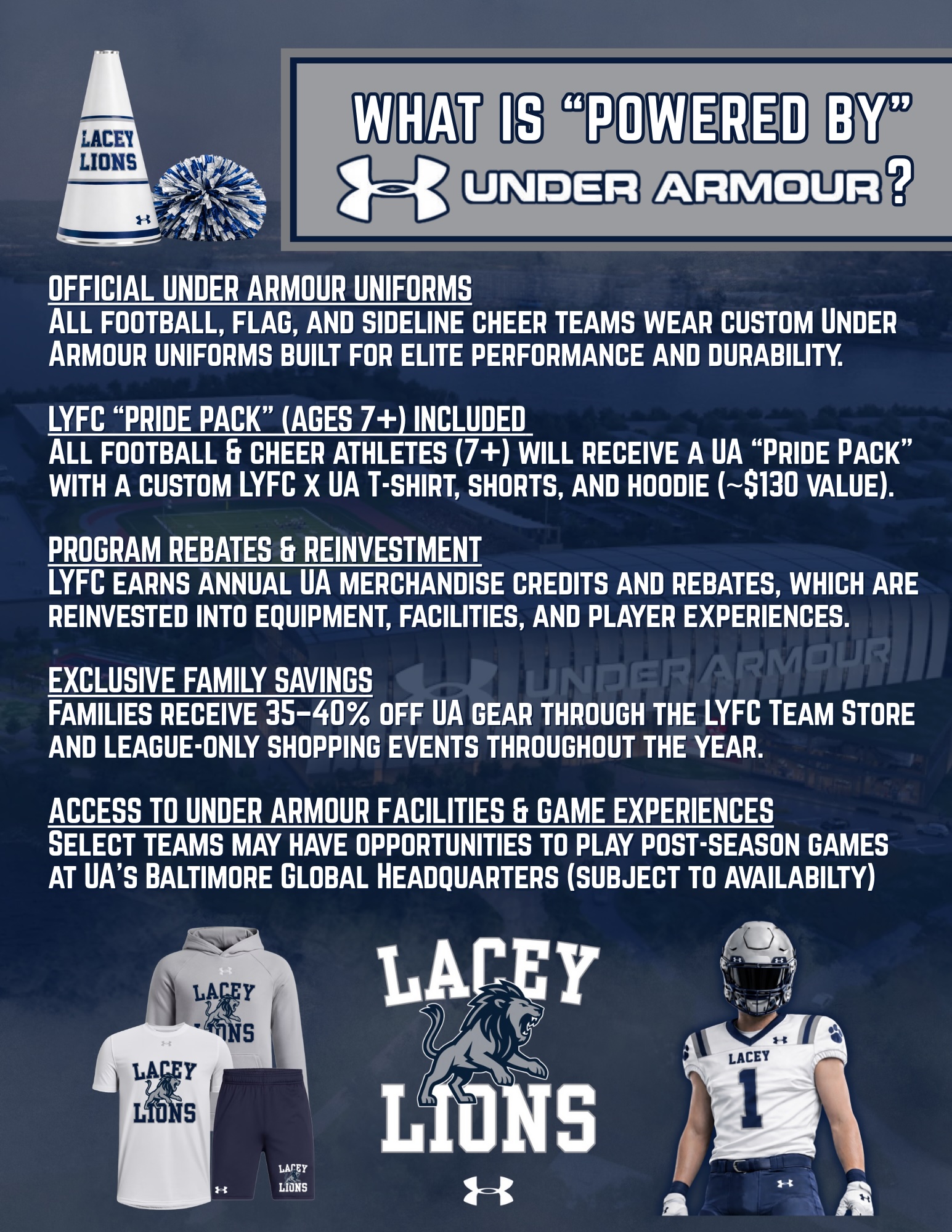 Copyright © 2026 Lacey American Youth Football  |  Privacy Statement |  Terms Of Use |  License Agreement |  Children's Privacy Policy |